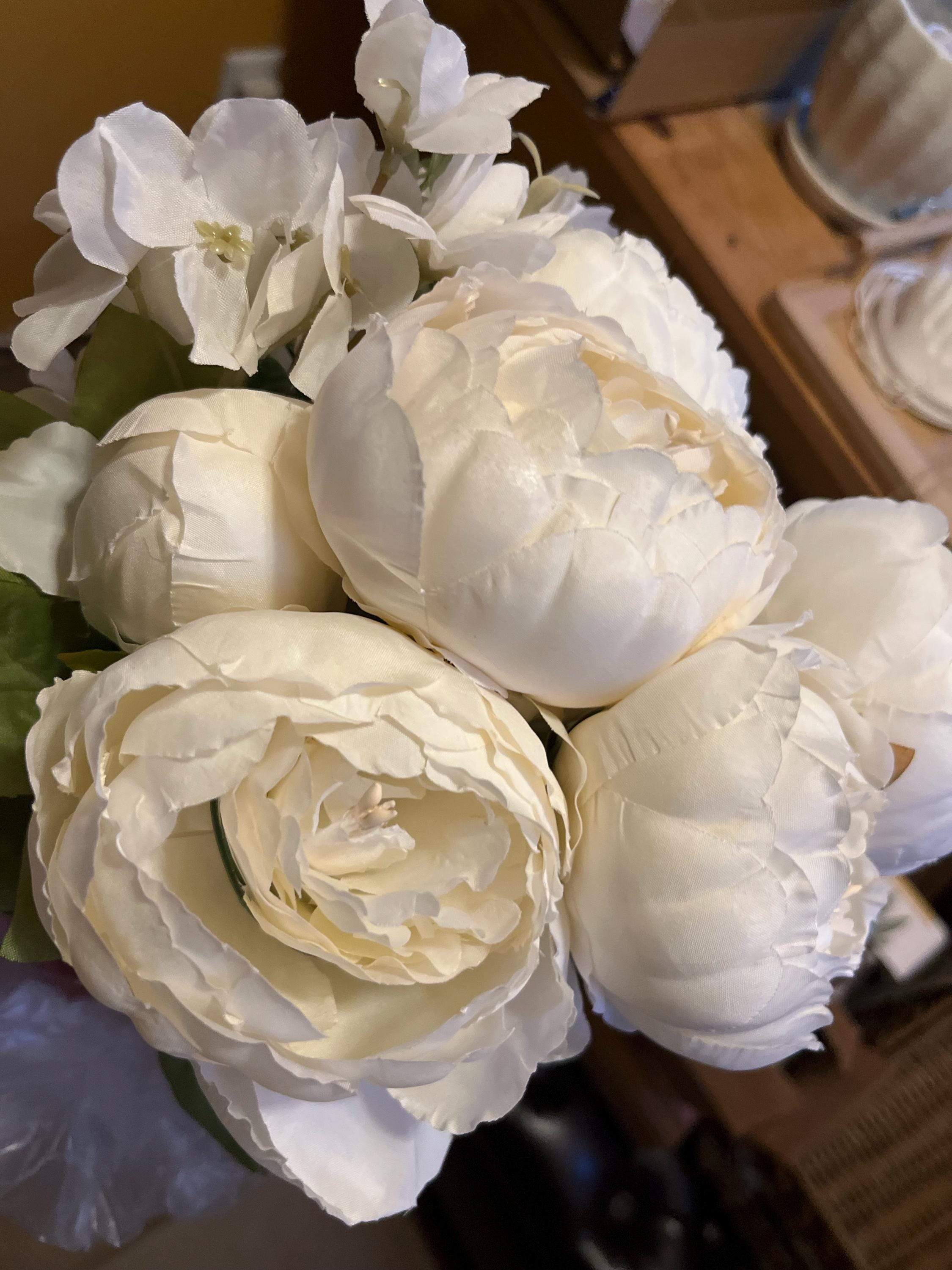Just what I needed, as none of the local craft stores had white peonies. These are realistic and sturdy and look great!