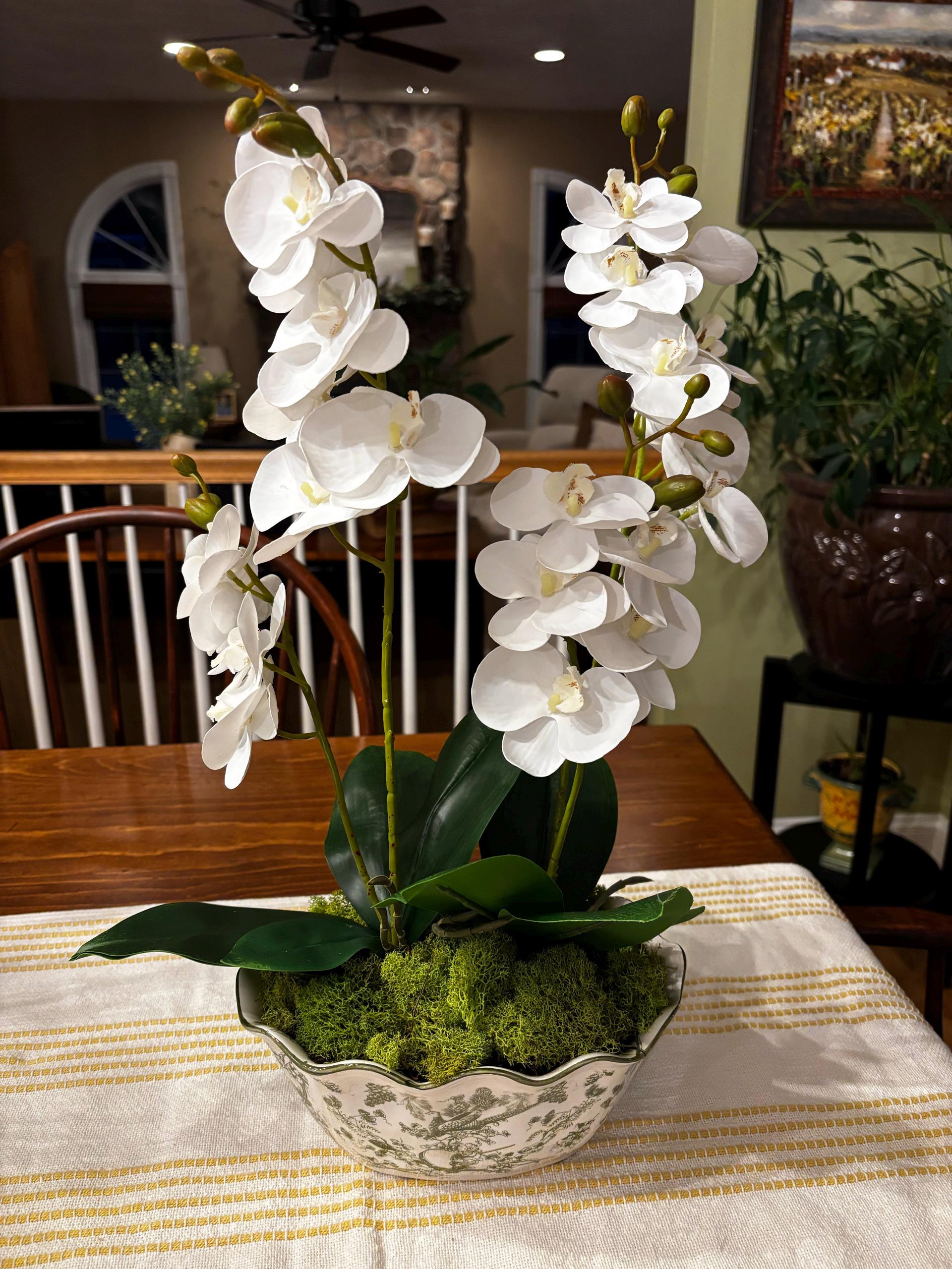 These faux flowers are very realistic! I put two in an existing pot and they look terrific. I love the look of real orchids but have the hardest time keeping them alive/blooming, so this is a perfect way to incorporate them into my decor. They shipped quickly and arrived well packaged. Highly recommend.